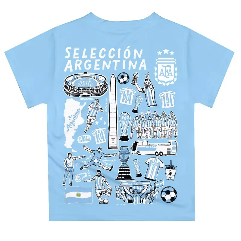 Dress your little one in the colors of their favorite international squad with this Argentina National Team Impressions Artwork T-Shirt by Vive La Fete. This toddler tee features moisture-wicking, performance fabric that’s comfy, strong and breathable, ensuring your little one stays cool and dry throughout the day. Sublimated colors provide long-lasting wear, while the screen print artwork on the back featuring the Argentina National Team shows off your family’s love for the beautiful game.