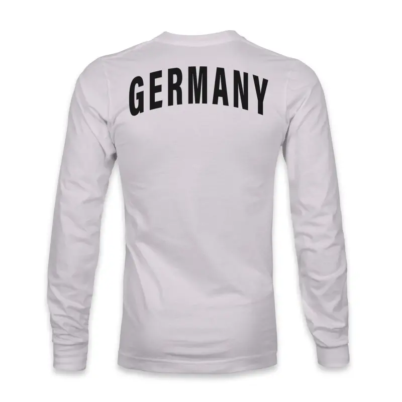 • Show your Germany National Team pride in this Arch Long Sleeve T-Shirt by 1863FC. The team crest screen printed on the left chest and the team name printed across the back make it clear you're a dedicated supporter. Made from 100% ring-spun cotton, this Germany National Team shirt offers supreme comfort and durability for everyday wear.